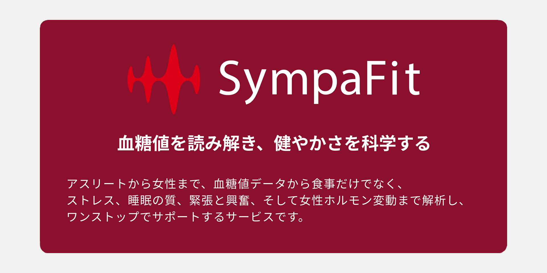 SympaFitは血糖値データを活用し、生理・PMS症状の重症度予測および睡眠改善支援を行うフェムテックアプリである。経時的グルコース値を測定し、学習モデルによって個人ごとの症状重症度要因を特定する。血糖値変動から月経・PMS症状を予測し、睡眠スコアの相関分析に基づく個別化された生活習慣改善提案を提供する。睡眠の質、食後血糖スパイク、日中のストレス指標を統合解析することで、ユーザーが事前に体調変化に対処できる手段を提供する。また、企業向けセミナーを通じて職場における女性の健康課題への理解促進も支援する。医師監修のもと科学的妥当性と安全性を確保し、働く女性の生産性向上とQOL改善を目指している。